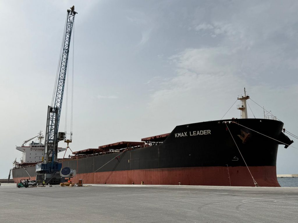 La mercancía ha llegado a bordo del buque KMAX LEADER, el mayor barco de carga general atracado en el muelle de Azucenas hasta la fecha