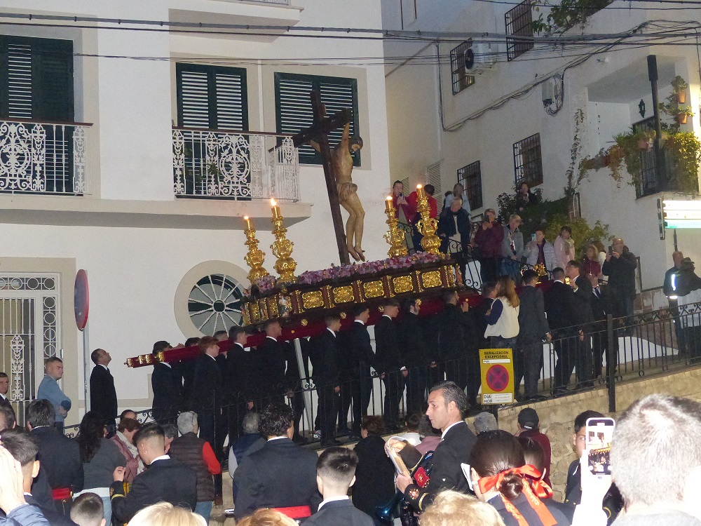 Jornada histórica la vivida en Salobreña en la tarde del sábado, 29 de noviembre, día en el que la impresionante talla del crucificado del Santísimo Cristo del Perdón ha recorrido las calles de la villa de forma extraordinaria para rememorar el 75 aniversario de la advocación del “Perdón”. Hasta ahora, en su historia, Salobreña solo había celebrado dos salidas extraordinarias de imágenes sagradas, una, concretamente el día 5 de marzo de 2022, con motivo de un Santo Vía Crucis “extraordinario” que presidió la imagen del Santísimo Cristo de la Humillación. Se organizó éste en acción de gracias por la finalización de la pandemia del Covid-16 y tuvo la particularidad de que por primera vez el vía crucis no fue presidido por la imagen del Santísimo Cristo del Perdón. La otra salida extraordinaria tuvo lugar el día 12 de agosto de 2023, con motivo de la llegada de la Virgen del Rosario tras el largo proceso de restauración a que había sido sometida en el taller del artista granadino Julio Alcaraz. En el día de ayer, su tercera salida extraordinaria, se efectuaba con el impresionante crucificado que recibe culto en la iglesia parroquial de Nuestra Señora del Rosario.