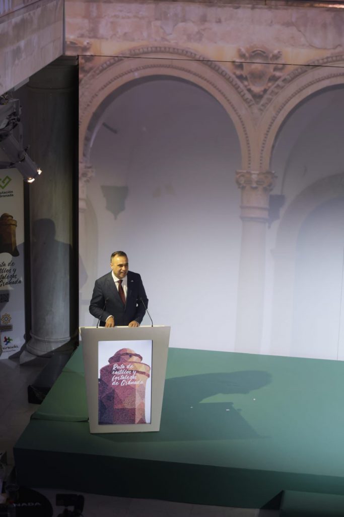 El presidente de la Diputación de Granada, Francis Rodríguez, junto a la alcaldesa de Granada, Marifrán Carazo, ha presentado la Ruta de los Castillos y Fortalezas de la provincia, una nueva propuesta turística que se integra en el proyecto estratégico “Todos los caminos llevan a Granada” y que apuesta por la innovación digital, la valorización del patrimonio y el desarrollo de los municipios. El acto institucional, celebrado en el Palacio de Neptuno de Madrid ante representantes del sector turístico, alcaldes y medios de comunicación, ha servido para dar a conocer este nuevo producto turístico estructurado, concebido como herramienta profesional y orientado tanto al visitante como a operadores especializados.