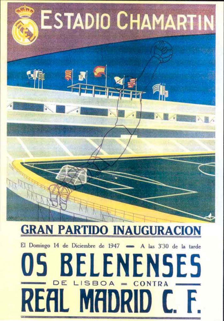 En la mañana del 14 de diciembre, comienzan los actos oficiales de inauguración con la celebración de la Sagrada Misa y la posterior bendición por parte del padre Luís Soria, que es socio madridista. Y, a las 3:30 de la tarde, culminan con la celebración del partido de fútbol amistoso entre el Real Madrid C.F. y el Os Belenenses de Lisboa, Campeón de la Liga de Fútbol de Portugal (1945 – 1946), arbitrado por el colegiado internacional Pedro Escartín Morán (1902 – 1988). El estadio está decorado con las banderas de los 14 clubes que integran por entonces la Primera División de Fútbol.
