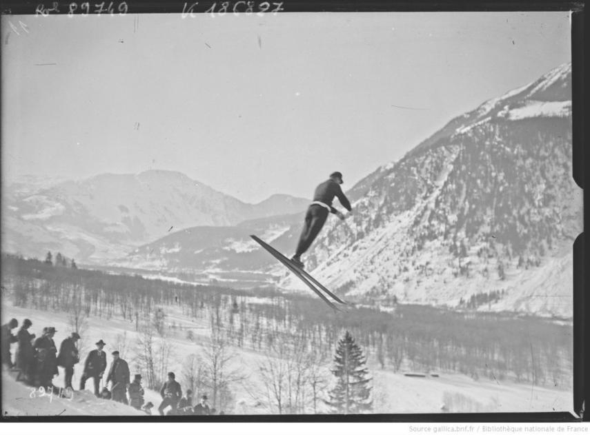 Saltos de esquí. Se disputaron en el “Trampolín Olímpico du Mont-Saint-Michel”, ante 2700 espectadores, el 4 de febrero. Toda la población del valle se encontraba en el glaciar de “Les Bossons”. Pierre de Coubertin estaba en la tribuna oficial, las escuelas estaban cerradas y se fletaron trenes especiales para animar a los campeones locales, Kléber Balmat (1896 – 1961) y Gilbert Ravanel (1900 – 1983) y, sobre todo, para maravillarse con la técnica y la gracia de los noruegos. La competición estuvo completamente dominada por los saltadores noruegos, en la que venció Jacob Tullin Thams (1898 – 1954) por delante de Narve Bona (1901 – 1976) y Thorleif Haug (1894 – 1934). Un error de medición en el salto privó al estadounidense Anders Haugen (1888 – 1984) de conseguir la medalla de bronce. El COI tuvo noticia de este dato por parte del Comité Olímpico Noruego y, más de 50 años después, en una ceremonia especial en Oslo, el jueves 12 de septiembre de 1974, Anders Haugen, de 85 años, recibió su medalla de bronce de manos de la hija de Haug, Anna Marie Haug Magnussen (1930 – 2010).