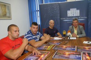 El teniente de alcalde de Deportes del Ayuntamiento de Motril, José García Fuentes, junto a los responsables del Centro Fitness Bull Gym, de la discoteca Sumo y la delegación en Motril de la Asociación de afectados por fibromialgia “Agrafim”, han presentado esta mañana la maratón benéfica de spinning que se celebrará el próximo sábado, 6 de agosto, en la playa de Poniente, desde primera hora de la mañana y hasta las 20.30 horas. En concreto, se trata de un evento que constará de 100 bicicletas y 3 monitores para la realización de dos sesiones de spinning en la mañana y la tarde, y otra de bodypump, así como exhibiciones de capoeira, juegos infantiles y una pella gigante. La inscripción en cada actividad costará 5 euros, incluyendo camiseta y bebida, y la recaudación irá destinada a la mencionada asociación de afectados por fibromialgia, una enfermedad que debilita y llega a anular la musculatura del cuerpo, cuyos tratamientos no están cubiertos por la Seguridad Social y que cuenta en Motril con cien componentes.
