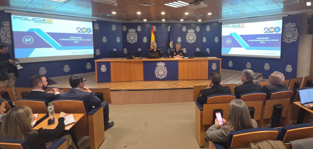 La Policía Nacional ha presentado en el Complejo Policial de Canillas el balance de las agresiones a profesionales sanitarios durante el año 2025, en el que se llevaron a cabo más de 11.000 intervenciones policiales. Concretamente se realizaron más de 3.500 actuaciones policiales en centros sanitarios y 8.000 en asistencias domiciliarias y se practicaron 138 detenciones por agresiones a profesionales en el ámbito sanitario.