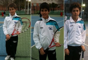 En la foto tenemos a tres niños que juegan al tenis como los ángeles. A la izquierda Jorge Martín Romano -benjamín de primero-, en el centro su hermano Ángel Martín Romano –alevín- y a la derecha su primo hermano Iván Rubiño Romano –alevín-. Como vemos la saga de la familia Salvador Romano (abuelo) tienen unas maneras envidiables. En próximos artículos daremos detalles de más miembros de esta familia como Dani Rubiño Romano, Guille Martín Sáez o hermanos Pepe / Javi Hernández Jiménez. Los demás crack de la escuela saldrán también a la palestra. La verdad es que son muchos.